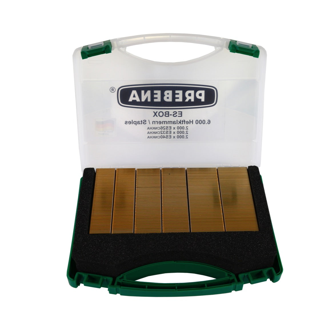Prebena ES Box CNKHA Heftklammern Typ ES aus Stahl verzinkt geharzt galvanisiert - 6000 Stück, verschiedene Längen