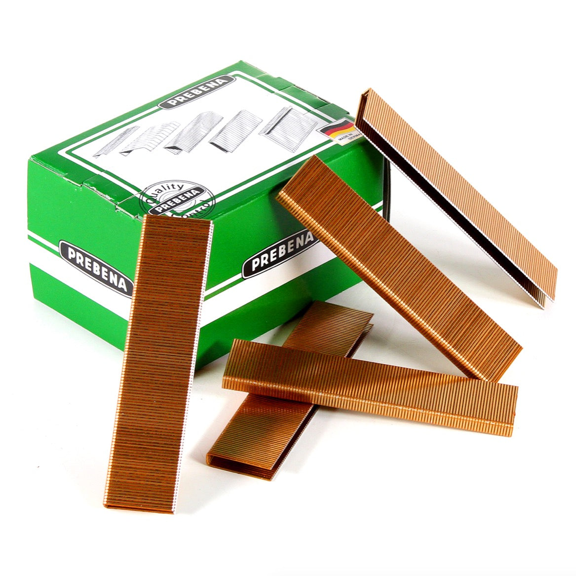Die Prebena ES26CNKHA Heftklammern sind aus Stahl gefertigt, geharzt und verzinkt. Sie eignen sich für verschiedene Tacker und Hefthammer. Die Länge einer Klammer beträgt 26 mm.