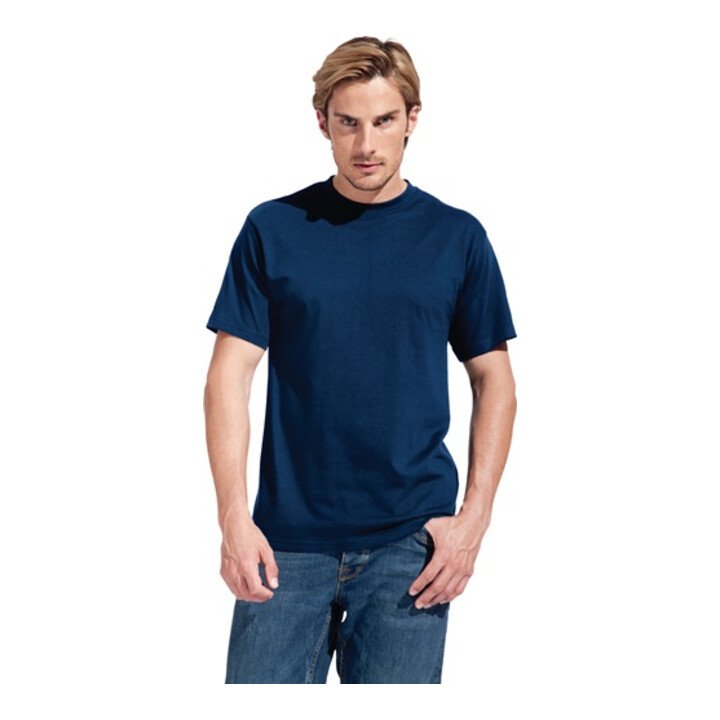 100% Baumwolle, ca.180 g/m² · klassisches Single-Jersey-T-Shirt mit Elasthananteil im schmalen Rippbündchen · hergestellt aus langstapeliger, gekämmter und ringgesponnener Baumwolle · die besonders feine Oberfläche ist hervorragend geeignet für jegliche Art der Veredelung · modern geschnitten · als Schlauchware gefertigt · mit Nackenband· verstärkte Schulternähte · waschen bei 60 °C · zertifiziert nach OEKO-TEX® Made In Green: M21LP99M7 auf Anfrage lieferbare Größen: XS-5XL auch als Damenartikel erhältlich
