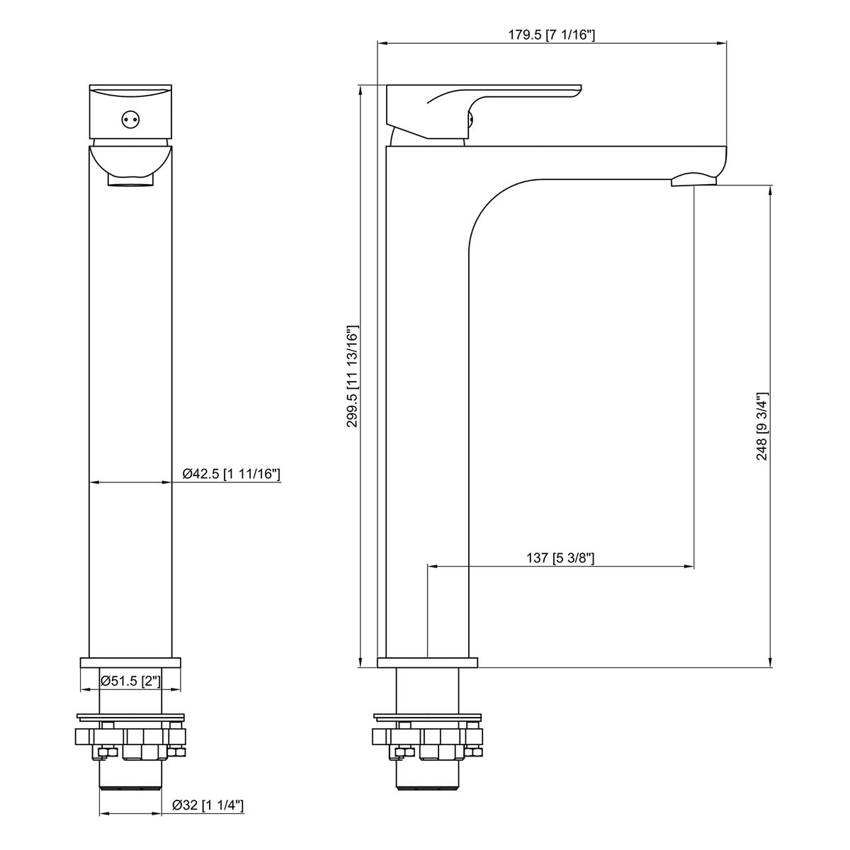 Rosenhahn & Söhne Poel L Design Badarmatur Wasserhahn Badezimmer - Armatur Bad [Chrom] - Heiß + Kalt Waschtischarmatur + Anschlussschläuche