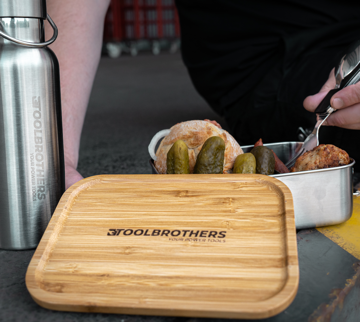 Alles an einem Ort! Das ist Sinn und Zweck von diesem hochwertigen Set. Die Makita Isoliertasche hält sorgfältig und zuverlässig die Temperatur der Lebensmittel. Damit jederzeit an jedem Ort gespeist werden kann, ist ein Multifunktionales Universalbesteck im Set enthalten. Dies beinhaltet ein Messer, einen Löffel, eine Gabel sowie einen Flaschenöffner für das "kühle Getränk" nach Feierabend. Darüber hinaus ist eine Toolbrothers Fan Edelstahl Trinkflasche mit einem Füllvolumen von 500 ml mit dabei. Des Weiteren ist die hochwertig verarbeitete Brotdose aus dem Hause Toolbrothers der perfekte Begleiter für jeden hungrigen Handwerker.