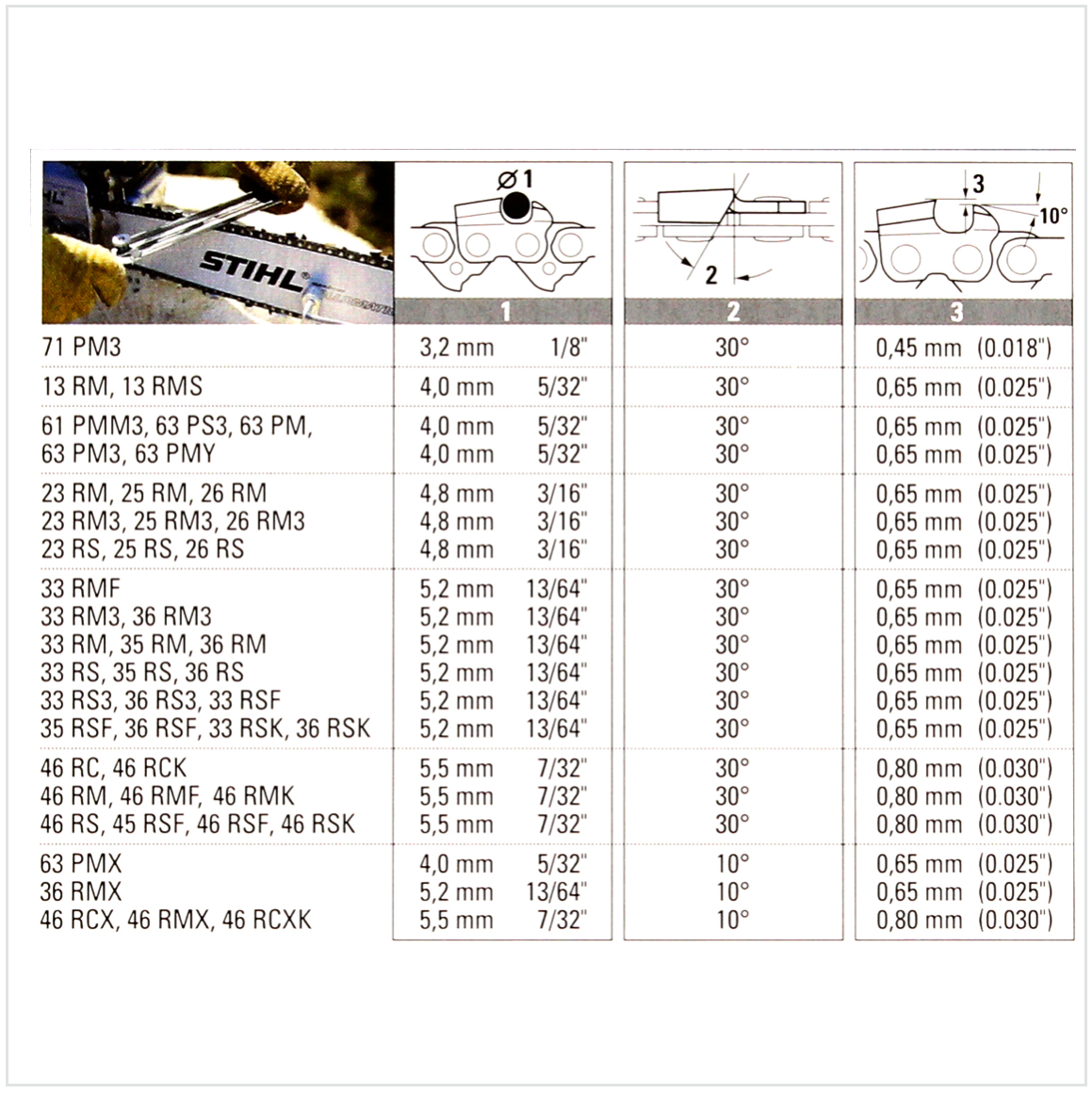 Esta cadena de sierra básica es robusta, de baja vibración y resistente. La cadena tiene un corte estrecho, por lo que tiene un contragolpe muy reducido y es extremadamente resistente. El sistema de lubricación Oilomatic de Stihl garantiza aún menos fricción y desgaste.