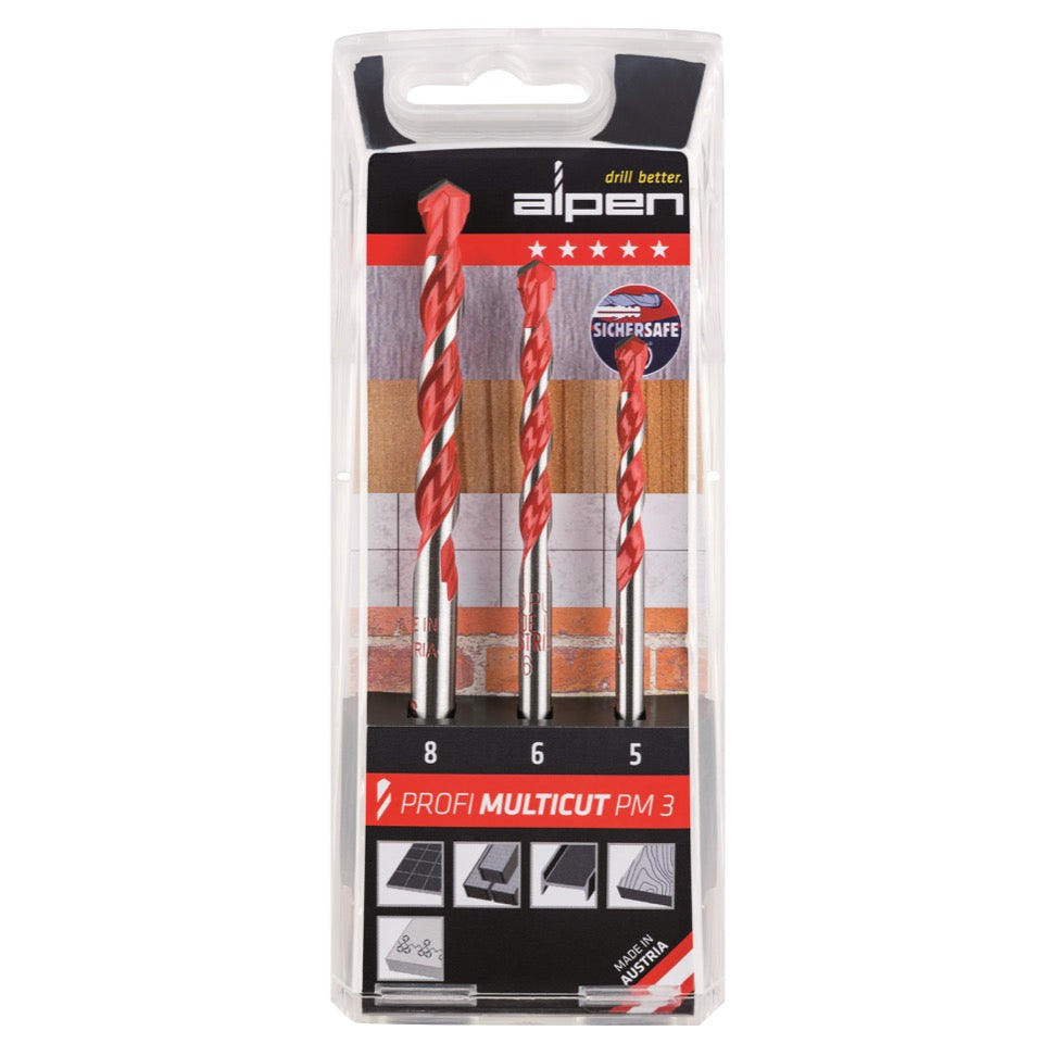 Alpen Profi Multicut PM Juego de brocas multiusos de carburo de 3 piezas 5 - 8 mm Certificación PGM