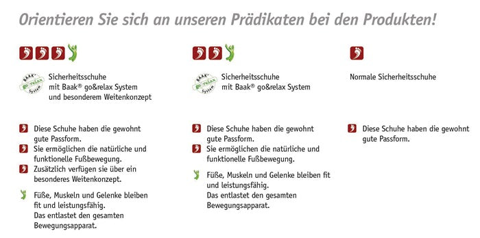 in accordance with DIN EN ISO 20345 - S3 SRC HRO WR - full-grain, robust, breathable LWG cowhide leather - BAAKdry® lining - waterproof and breathable membrane - heel safety system - Baak® steel flex cap - integrated H-coupling element for foot-friendly bending - puncture-resistant Kevlar® midsole - Baak® go&relax system - PU midsole with high energy absorption capacity - Baak® ESD Softstep+ insole - can withstand temperatures of up to 300 °C for short periods - slip-resistant, resistant to many acids and alkalis, cut-resistant - in accordance with DGUV 112-191 - width 11 also available from size 38 and up to size 48 on request. 38 and up to size 48 available on request