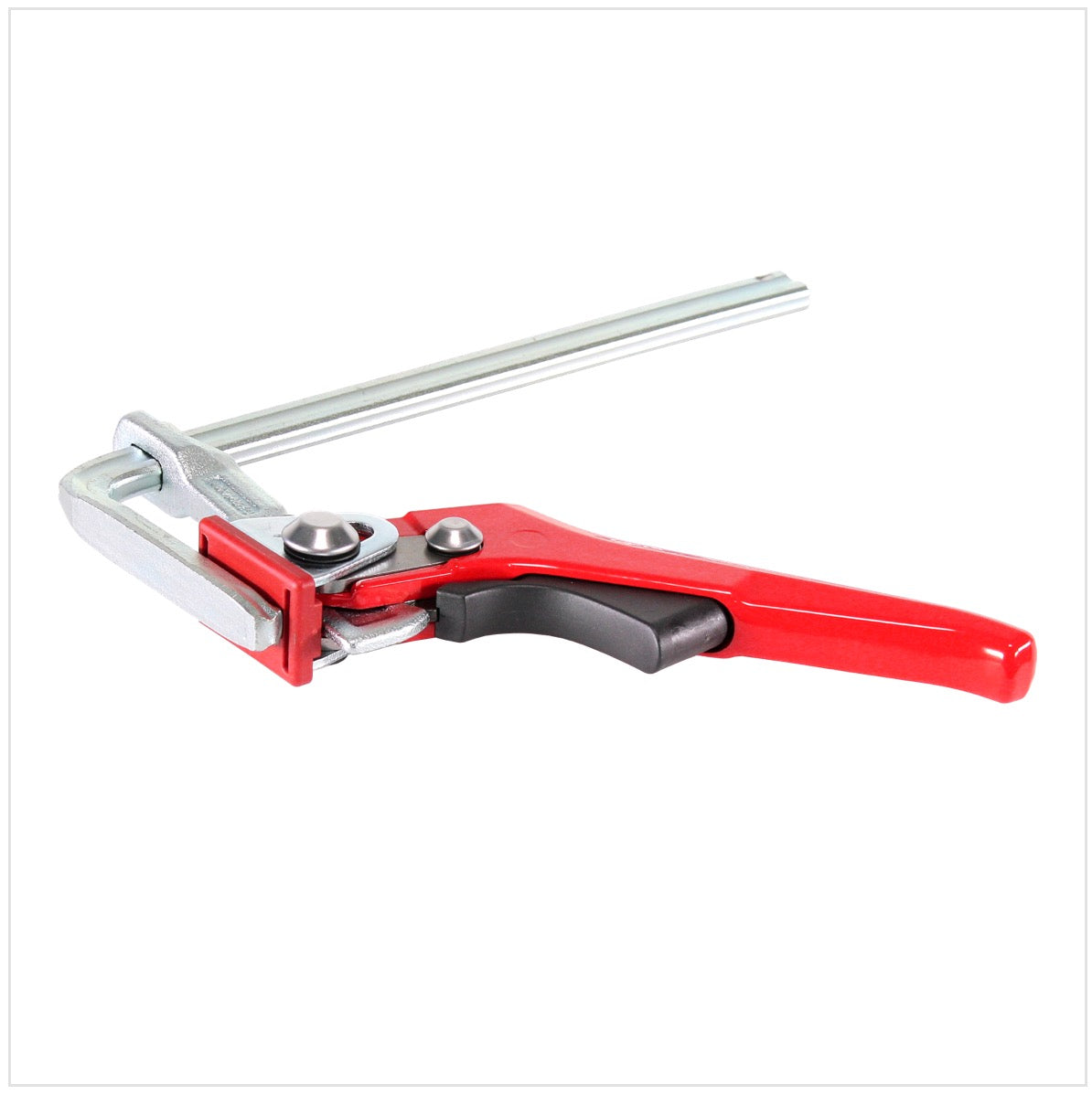 This GTR 16S6 all-steel table clamp from Bessey is made of high quality stainless steel, the fixed stirrups specially forged for 12 x 8 mm nuts. This clamp is ideal for the secure fastening of guide rails from Festool, Protool, Metabo, Makita, Hitachi, etc. and for clamping in profiles as well as on work tables. The  GTR 16S6 from Bessey is 5 times faster than an ordinary clamp and is vibration-resistant. The Bessey GTR 16S6 table clamp has a clamping force of up to 2400 N.