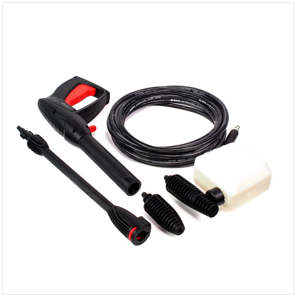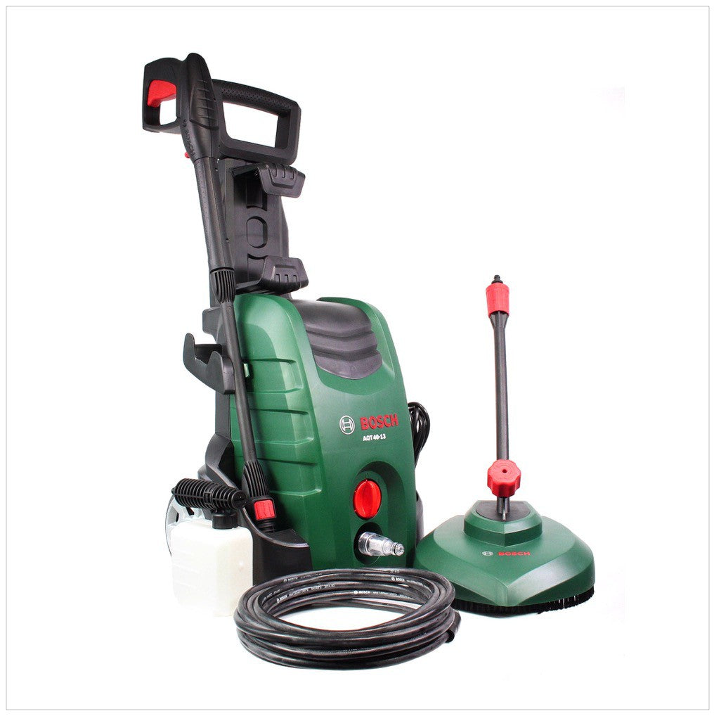 La Bosch AQT 40-13 es una limpiadora de alta presión de agua fría de 1900 vatios con una presión de 130 bares. La máquina es versátil gracias a los numerosos accesorios incluidos en la entrega. La limpiadora de alta presión es potente y eficiente, lo que la hace ideal para cualquier tarea de limpieza en la casa. Las grandes ruedas garantizan una movilidad óptima y el diseño compacto facilita el almacenamiento, también gracias al asa de transporte ajustable y plegable con un innovador almacenamiento para mangueras. El AQT 40-13 es energéticamente eficiente gracias a la función de parada automática y al mismo tiempo es fácil de operar gracias a los acoplamientos rápidos SDS y al soporte de accesorios integrado.