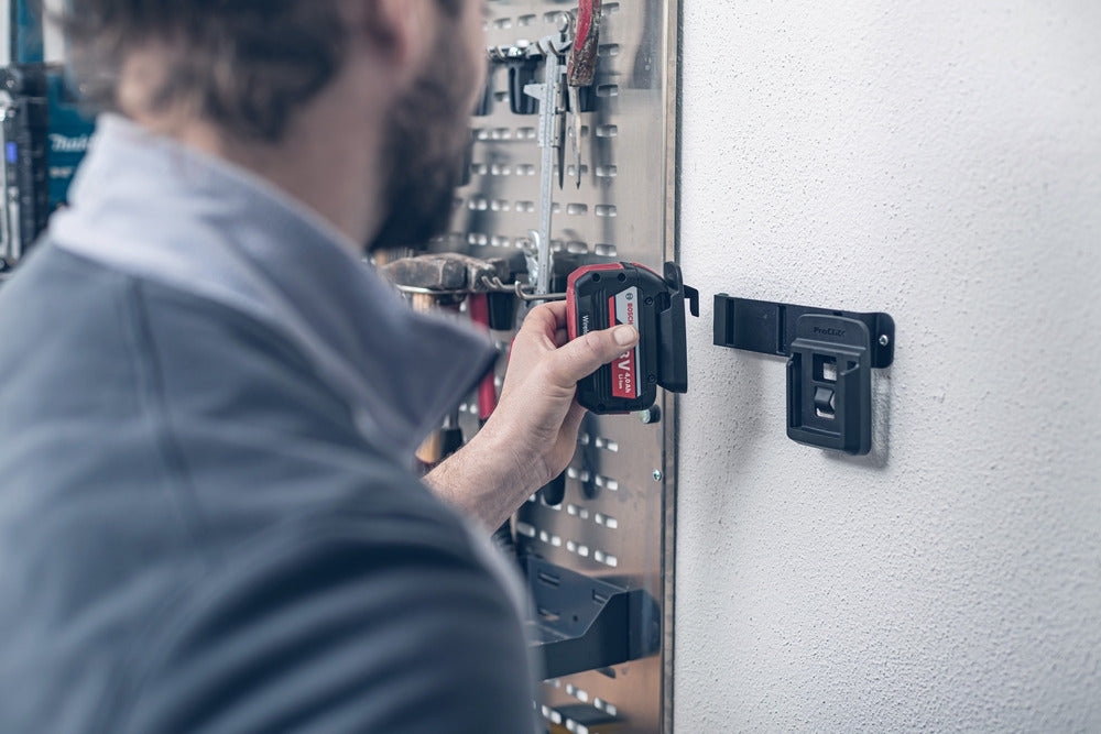 The ProClick Battery Adapter Set 1.0 is the perfect solution for carrying a spare battery safely on your belt. This adapter is specially developed for the ProClick Holder and enables a reliable connection between the battery and the holder. It is compatible with the AMPShare battery system powered by Bosch Professional as well as all commercially available CAS batteries and the Hilti B22 battery. With the ProClick Battery Adapter 1.0 you get a practical set of 2 so that you always have a spare battery to hand.