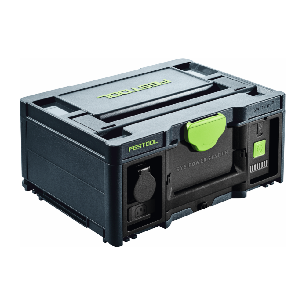 The high-performance Festool SYS-PowerStation SYS-PST 1500 Li HP energy storage system supplies power even where none is available. The independence from energy sources such as sockets, generators or building site power distributors is an absolute gain for every tradesman. Laying cables, fuse problems or transporting heavy generators is completely superfluous. The uncertainty factor of old power lines on building sites is also simply eliminated. The continuous 3680 watts and short-term 11000 watts of available power provide Festool with enough power to operate all network tools. Even vacuum cleaners, large saws or hammer drills can be operated without any loss of power. In most cases, the 1555 watt hours of energy content cover an entire working day. The practical Systainer format and a weight of just 16 kg make it easy to transport to any location. In contrast to diesel generators, the energy storage system protects the environment and the user in the long term. Thanks to Smart Charging, the charging strategy is selected depending on the current cell temperature. This means that the PowerStation is always charged with the optimum charging power. This maximises charging times and protects the battery cells at the same time. It is also possible to protect other sockets, e.g. cable drums, without any problems. The TKS 80 can only be used with appliances that do not require an earthed power source, so it cannot be operated with the SYS-Power Station. An anti-static suction hose must be used in combination with a vacuum cleaner. Thanks to the high power quality, devices such as laptops, smartphones etc. can also be charged. Naturally, the Festool SYS-PowerStation SYS-PST 1500 Li HP is compatible with machines from all manufacturers. Festool is a leading manufacturer of power tools in the high-end segment, characterised by a long tradition and maximum processing standards. Only for a short time! Benefit from the SYS-PowerStation cashback promotion! During the promotion period from 18.11.2024 - 31.05.2025, you will receive a cashback of €500 when you purchase a SYS-PowerStation (invoice to be submitted by 30.06.2025 via the MyFestool portal). The cashback will be paid out by Festool.