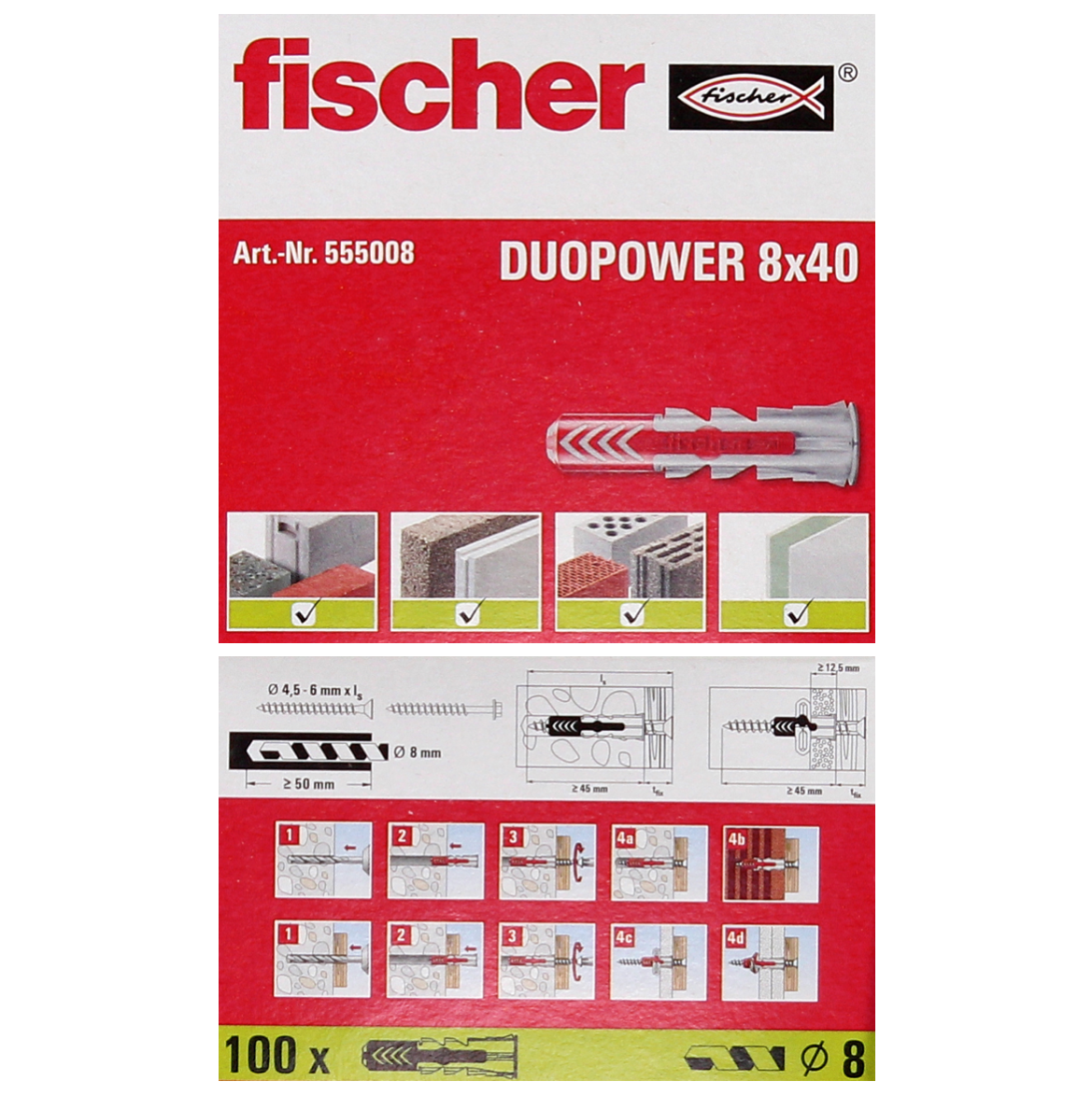 - 1000x tacos de expansión fischer DUOPOWER 8x40mm (10x 555008)