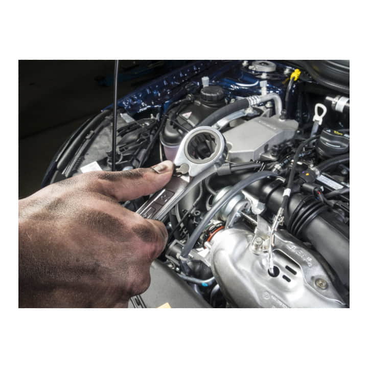 with changeover - CV steel - chrome-plated - jaw 15° angled - ring side angled by 13° - fine-toothed 72 teeth (SW 8 and 9, 60 teeth)