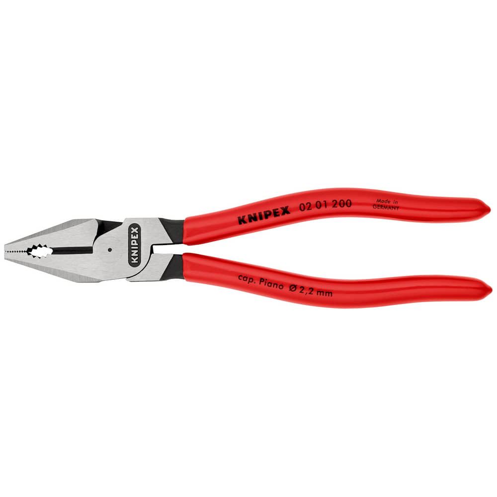 35 % less force than conventional combination pliers - gripping zones for flat and round material - long cutting edges for thicker cables - cutting edges additionally hardened, cutting edge hardness approx. 63 HRC - special tool steel in special quality, forged, multi-stage oil-hardened pliers black atramentised - polished head