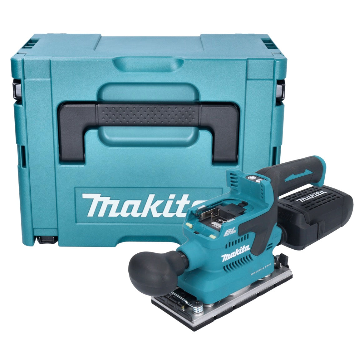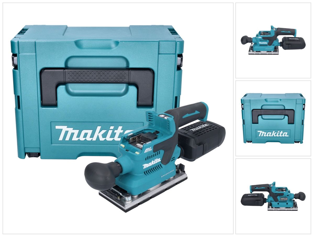 The DBO 382 from Makita is a powerful cordless orbital sander for a wide range of applications. The 93 x 185 mm base plate makes it perfect for sanding large surfaces. Alternatively, sandpaper measuring 93 x 185 mm can also be attached using the Velcro fastener. Thanks to the three adjustable speed levels, even surface finishes on wood, metal or plastic are possible. The rubberised handle ensures a secure grip. The special arrangement of the battery ensures that the machine is perfectly balanced. The sanding dust can be collected with the dust collection box supplied or with an external dust extractor. Thanks to the perforated base plate, very effective dust extraction is possible. Makita is a leading manufacturer of power tools, characterised above all by its long tradition and high quality workmanship.