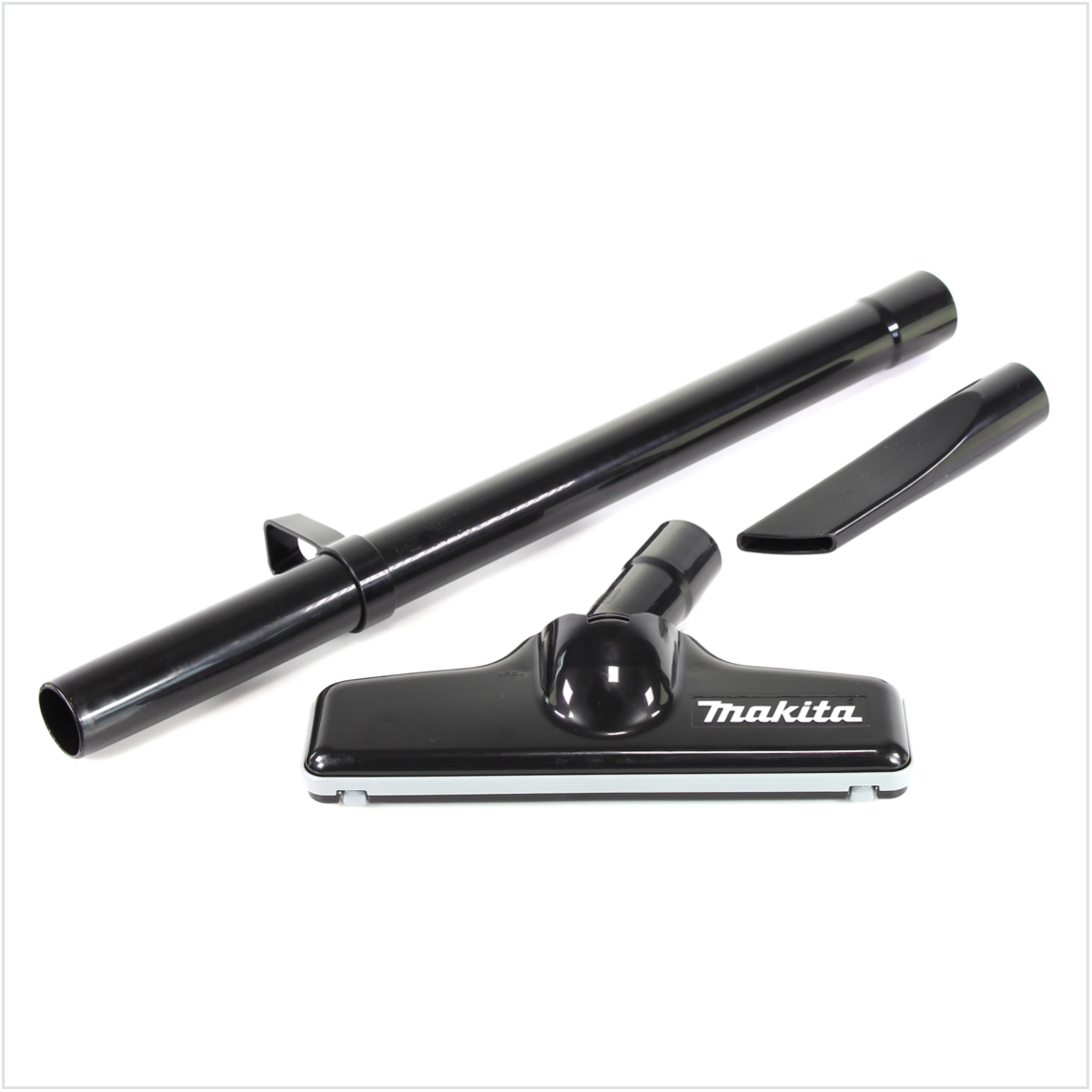 The DCL 182 cordless hoover from Makita is a compact and handy 18 V hoover. It combines high suction power with low noise levels and is versatile thanks to the extension tube supplied. It can be used either in the workshop or at home. Thanks to the floor nozzle and crevice nozzle supplied, neither large surfaces nor small corners pose a challenge. The DCL 182 has two different suction levels and an integrated LED indicator light to keep an eye on the battery charge level at all times. The DCL 182 can be operated with either paper filter bags or reusable fabric filter bags. The rubberised handle ensures safe and comfortable handling. Makita is a leading manufacturer of power tools with a large 18 V battery system range and a long tradition of excellence