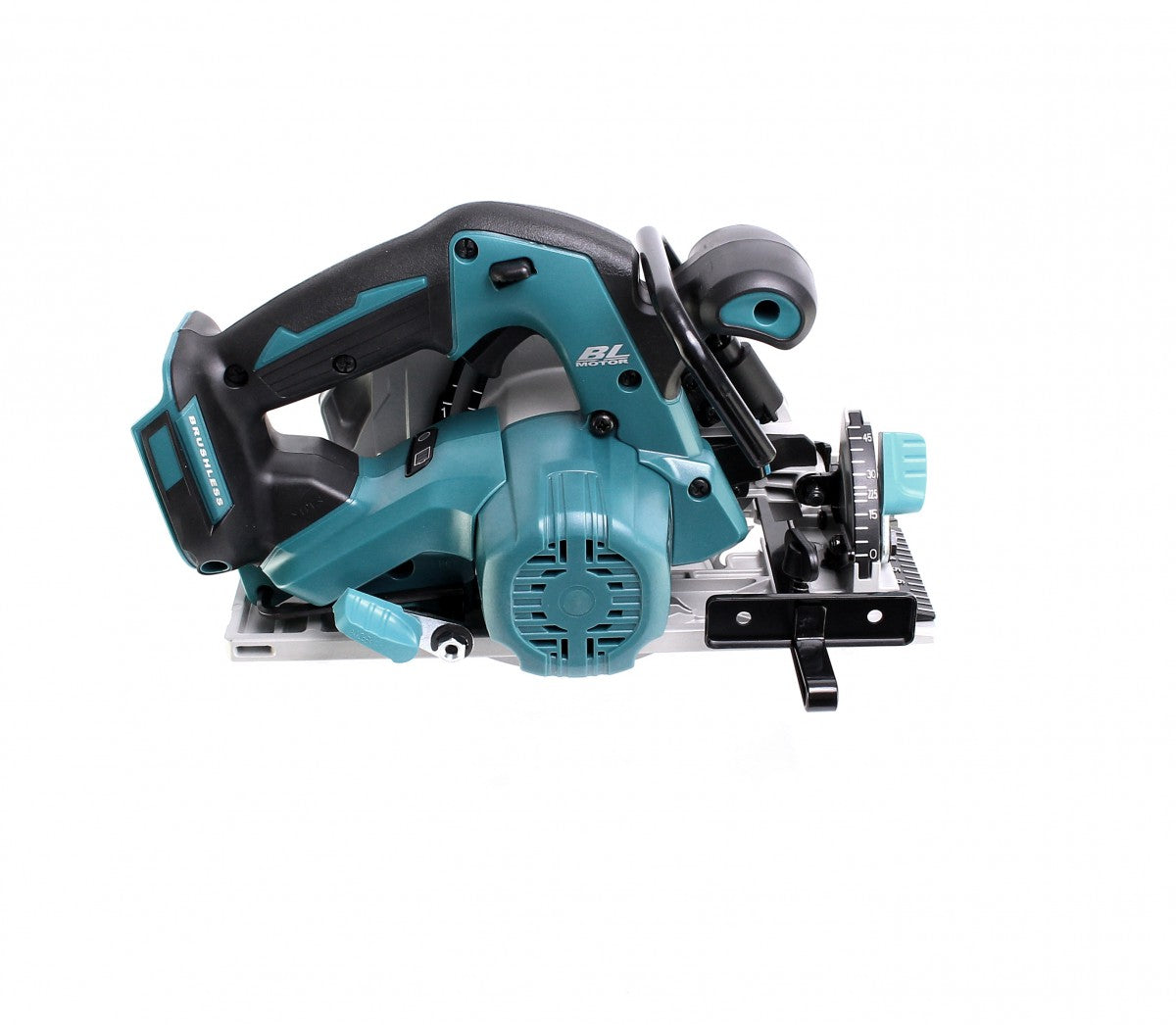 The Makita DHS 680 18V Li-Ion cordless circular saw impresses with its powerful brushless motor (brushless) and automatic speed regulation thanks to Automatic torque Drive Technology for optimum performance for every requirement. The Makita DHS 680 is perfect for roofing work and interior work. The tool has a long service life thanks to the brushless and therefore low-wear motor technology. The cordless portable circular saw can be tilted by up to 50° and a blowing device keeps the application area clean at all times. A bright double LED ensures optimum visibility when working and a practical bracket allows the Makita DHS 680 cordless portable circular saw to be hung up.