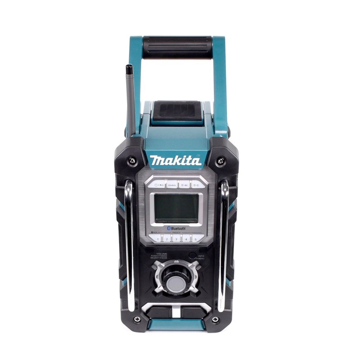 La radio de obra DMR 106 de Makita es el compañero ideal en la obra gracias a su robusta carcasa. La carcasa, equipada con un asa de transporte, está recubierta de goma en los bordes exteriores y todas las aberturas están selladas contra el polvo y la suciedad y protegidas contra salpicaduras de agua. Una gran pantalla LCD hace que la configuración de canales sea un juego de niños. La búsqueda de emisoras y el control de volumen se controlan fácilmente mediante un mando giratorio y reducen la cantidad de tiempo que tienes que utilizar la radio. Gracias al Bluetooth integrado, el DMR 106 puede reproducir fácil y fácilmente dispositivos móviles como teléfonos inteligentes, portátiles o tabletas. El amplio soporte para baterías puede acomodar todas las baterías Makita estándar y hace que el DMR 106 sea el complemento perfecto para sus herramientas a batería Makita.