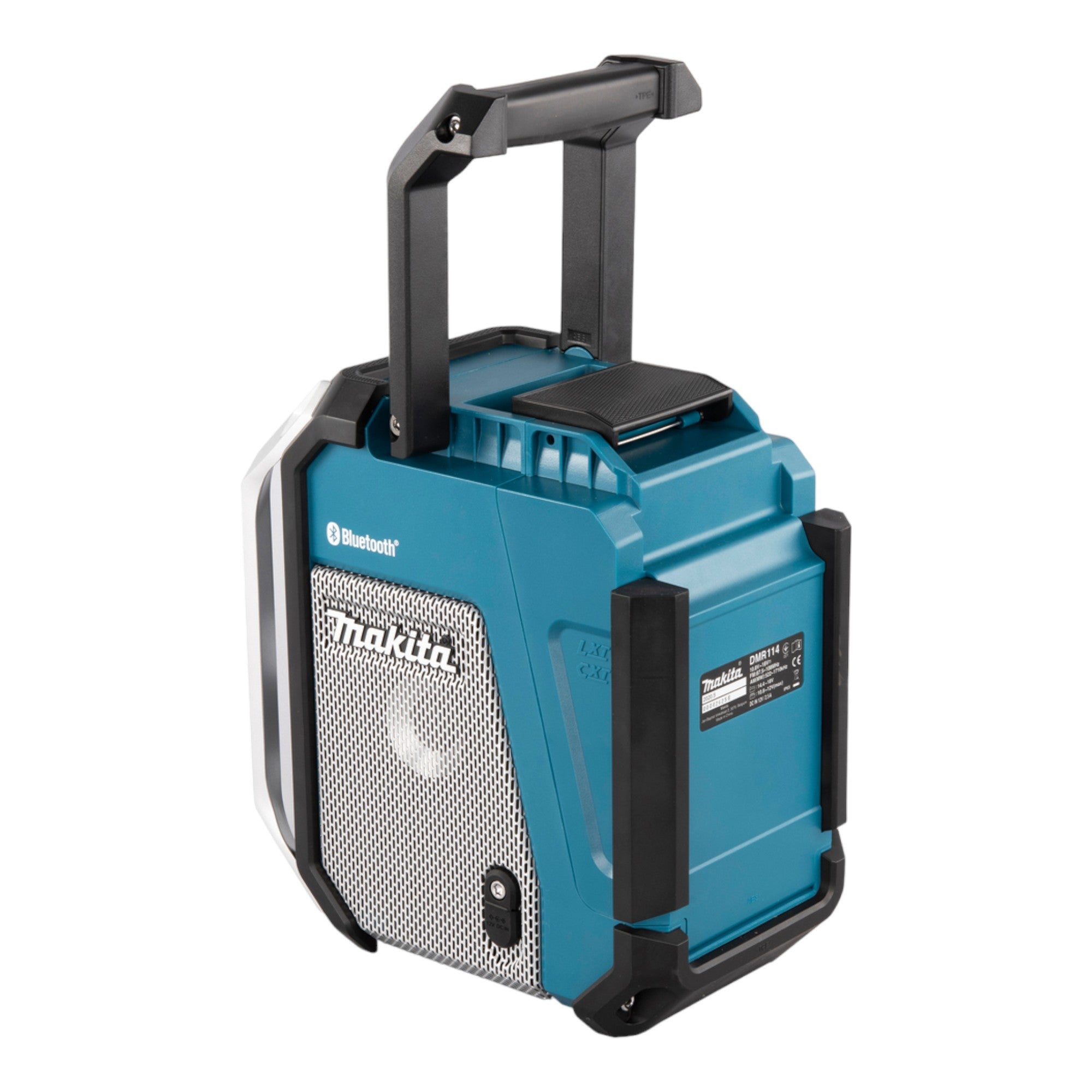 La radio de obra inalámbrica DMR 114 de Makita es un dispositivo robusto y versátil que fue desarrollado especialmente para su uso en obras. Con una clasificación de seguridad IP65, es a prueba de polvo y está protegido contra chorros de agua, lo que lo hace ideal para entornos de trabajo hostiles. La radio puede funcionar con baterías de iones de litio Makita de 12 V, 14,4 V o 18 V o con la red eléctrica, lo que proporciona máxima flexibilidad y portabilidad. Gracias a la función Bluetooth, puedes conectar tu reproductor de música directamente a la radio y transmitir tu música favorita de forma inalámbrica. La reproducción de audio se puede ajustar en siete posiciones diferentes para adaptar de forma óptima el sonido a la música que se reproduce. Además, la radio tiene un puerto AUX y un puerto USB que puedes usar para cargar tu teléfono. El DMR 114 es compatible con todas las baterías Li-Ion de Makita de 7,2 V a 18 V, incluidas las baterías deslizantes de 10,8 V, pero no con las baterías de las series Makita mt, maktic o G. Una protección contra descarga profunda integrada garantiza que el dispositivo se apague automáticamente cuando el nivel de la batería es demasiado bajo para evitar daños a la batería. Con estas características versátiles y fáciles de usar, la radio inalámbrica para obras de construcción DMR 114 de Makita ofrece una excelente calidad de sonido y una fiabilidad sólida para cualquier obra.