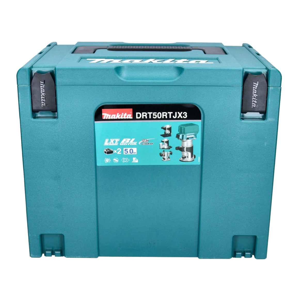Fresadora multifuncional a batería Makita DRT 50 ZJX3 18 V sin escobillas + módulos de fresado + juego de fresas de 6 piezas + Makpac - sin batería, sin cargador