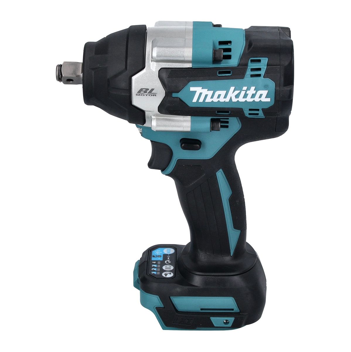 The DTW 700 from Makita is a powerful 18 volt cordless impact wrench with a maximum tightening torque of 700 Newton metres. It is particularly suitable for industrial production and other construction applications. The 1/2 inch square drive socket with locking pin ensures that your impact sockets are held securely on the machine. With the four speed levels and 4 additional programmes for tightening and loosening screws, you can always find the optimum working mode for your application. The auto-stop function stops the cordless impact wrench automatically after 0.5 to one second after the impact mode has started and after the nut/screw has been sufficiently loosened. This prevents unintentional dropping. This is particularly useful when changing tyres and when working at height, e.g. on scaffolding. The brushless motor guarantees more endurance with a longer service life and a more compact design. The deep discharge protection ensures that the tool switches off automatically when the battery is almost empty to protect the battery from damage to the cells. A double LED with afterglow function ensures a better view of your work area in difficult lighting conditions. The DTW 700 is also equipped with XPT technology ( eXtreme Protection Technology ), which means that the impact wrench is protected against dust and splash water and can also be used in adverse weather conditions. Makita is a leading manufacturer of power tools, characterised by a long tradition and the highest quality standards.