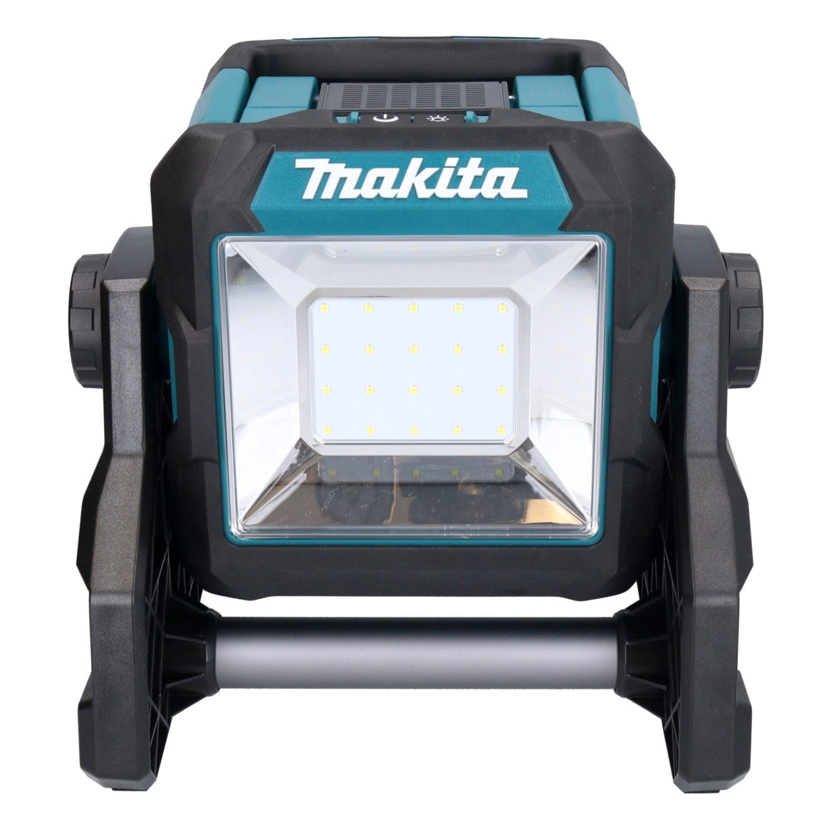 El foco de construcción LED ML003G de Makita ofrece una iluminación óptima del lugar de trabajo. Gracias a sus 20 LED fijos de 0,6 W cada uno, se genera una potencia luminosa de 450 o 1.100 lúmenes en dos niveles de luminosidad. El cuerpo de la lámpara se puede inclinar continuamente hacia arriba y hacia abajo 240°, para que puedas ajustar la luz según tus necesidades. Disfrute de una iluminación de alta calidad con brillo óptimo y ahorro de energía.