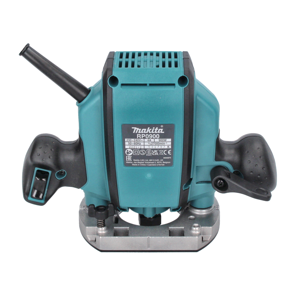 The Makita RP 0900 is a lightweight and compact router for grooving and decorative woodwork. With its powerful 900 watt motor, it is easily suitable for a shaft diameter of 8 mm. The 3-stage turret depth adjustment is easy and precise to operate. The plastic soleplate is replaceable for sensitive surfaces. Thanks to the extraction socket, external extraction is possible directly on the router. The quick-release lever enables simple, quick and precise depth locking.
