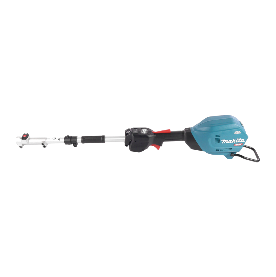 The versatile 40 V max. cordless multifunctional drive UX 01 G comes with a powerful brushless motor and a three-stage electronic speed setting. Several available accessories make it an all-rounder for gardening and landscaping. This makes it unbeatably cost-effective, as you only need the right attachment for the intended work and not a multitude of tools. Whether as a hedge trimmer, chainsaw, grass trimmer, scythe, floor cutter or sweeper, it seems as if it can do it all. All tools can be changed completely without tools. A 40 V max. battery (not included) provides the tool with an extremely high level of power. Makita has equipped the UX 01 G multifunctional drive with the latest technology, so it is optimally protected against dust and splash water with Xtreme Protection Technology ( XTP ). The powerful motor features Active Feedback Sensing Technology ( AFT ), which stops the tool immediately if it jams. The infinitely variable speed control thanks to the electronic switch and the additional three-stage electronic speed setting is designed for all applications. Reversing the direction of rotation with the scythe or lawn trimmer attachment makes it easy to remove grass cuttings. The height-adjustable round handle on the device can be customised to suit any height, attachments and working conditions. The shoulder strap included in the scope of delivery enables effortless working.