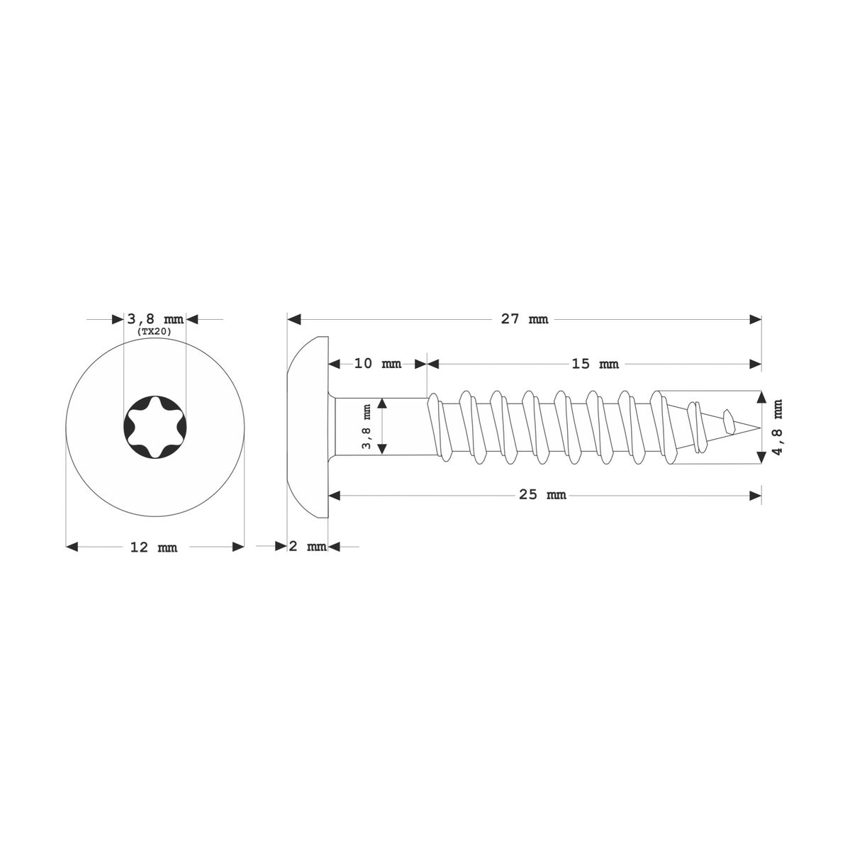 Tornillos para fachada Meisterling 4,8x25 mm 100 piezas (010020000011) 12 mm cabeza plana antracita con rosca parcial Torx Acero inoxidable V2A