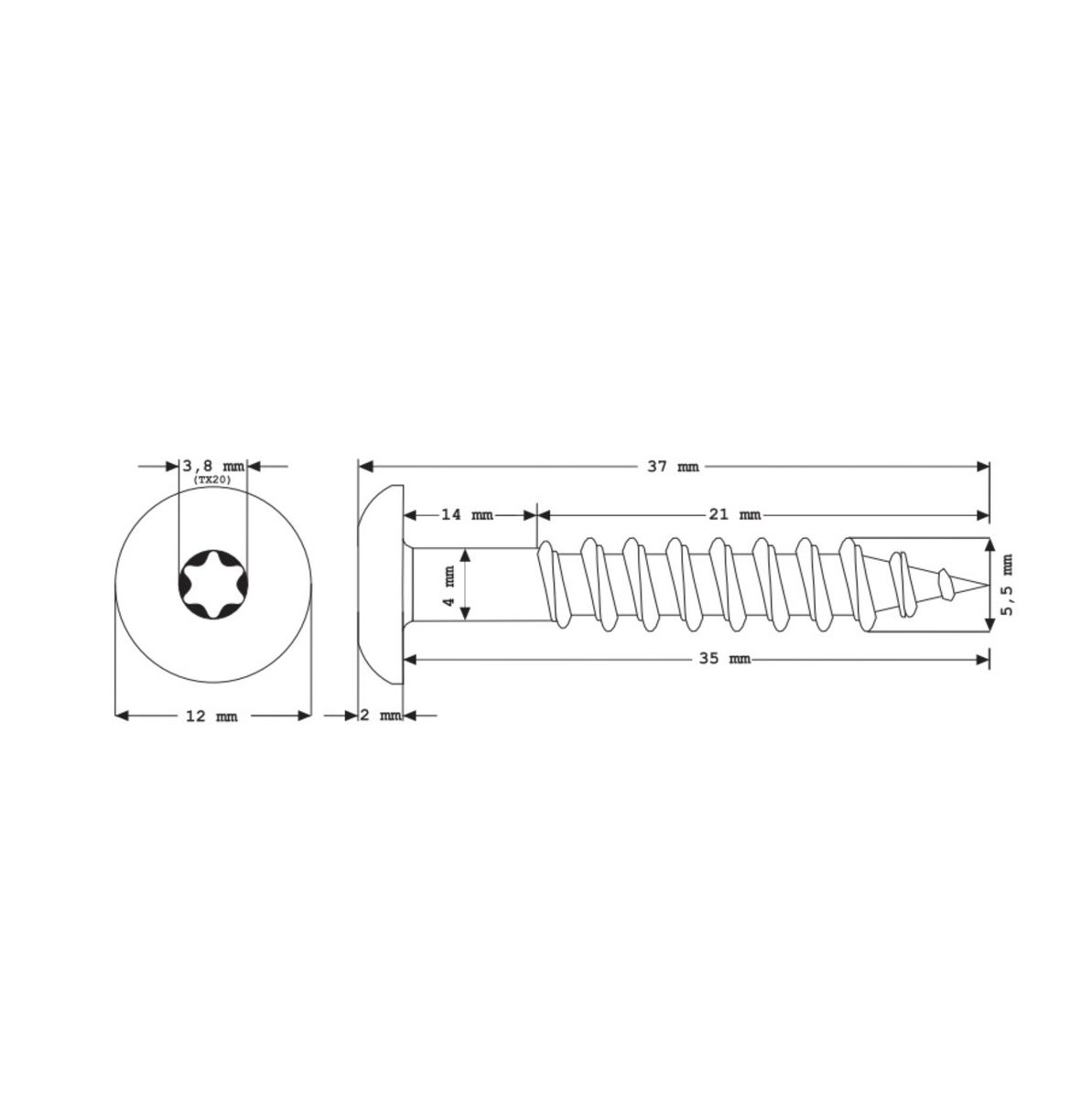 Diámetro de la cabeza: 12 mm