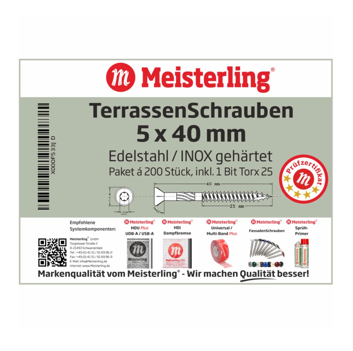 - 200x tornillos para terraza Meisterling 5 x 40 mm (010010000001)