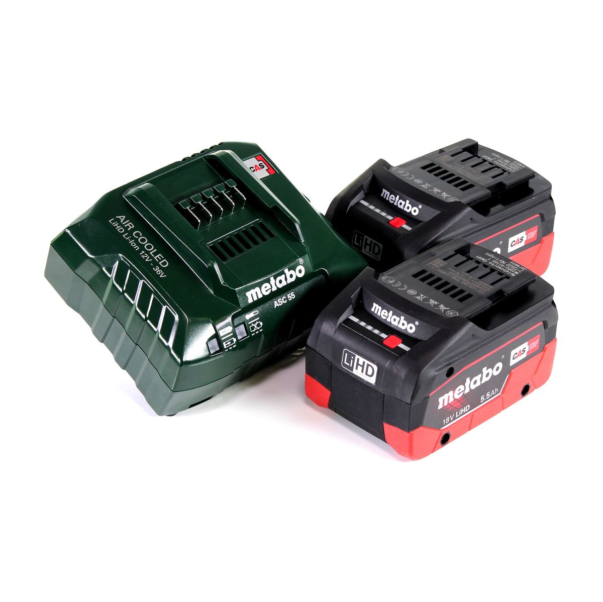 - 2 baterías Metabo LIHD de 18 V y 5,5 Ah