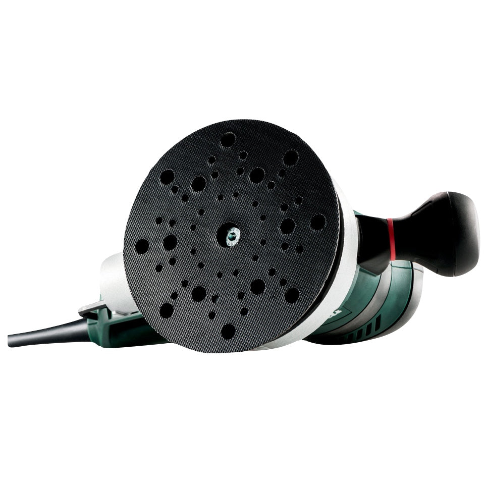 La lijadora orbital SXE 450 TurboTec de Metabo impresiona con su ajuste patentado de doble circuito oscilante. Esto permite el ajuste ideal para un esmerilado fino y una máxima eliminación de material. Gracias a la electrónica Vario V, la velocidad se puede regular para adaptarse al material. Gracias a la función Turbo Boost, se puede lograr un aumento de rendimiento a corto plazo. Además, no hay marcas de pulido cuando la máquina está colocada. El mango de agarre suave es fácil de usar y, por lo tanto, permite largas jornadas de trabajo. El rodamiento de bolas a prueba de polvo garantiza una larga vida útil de la máquina. La carcasa del cojinete, que está hecha de aluminio fundido a presión, es robusta y de alta calidad. Por supuesto, es posible conectar extractores de polvo móviles. El plato abrasivo multiperforado garantiza una succión eficaz y una vida útil más prolongada del abrasivo. Metabo es un fabricante de herramientas premium, una larga tradición y conceptos sofisticados caracterizan a la empresa.