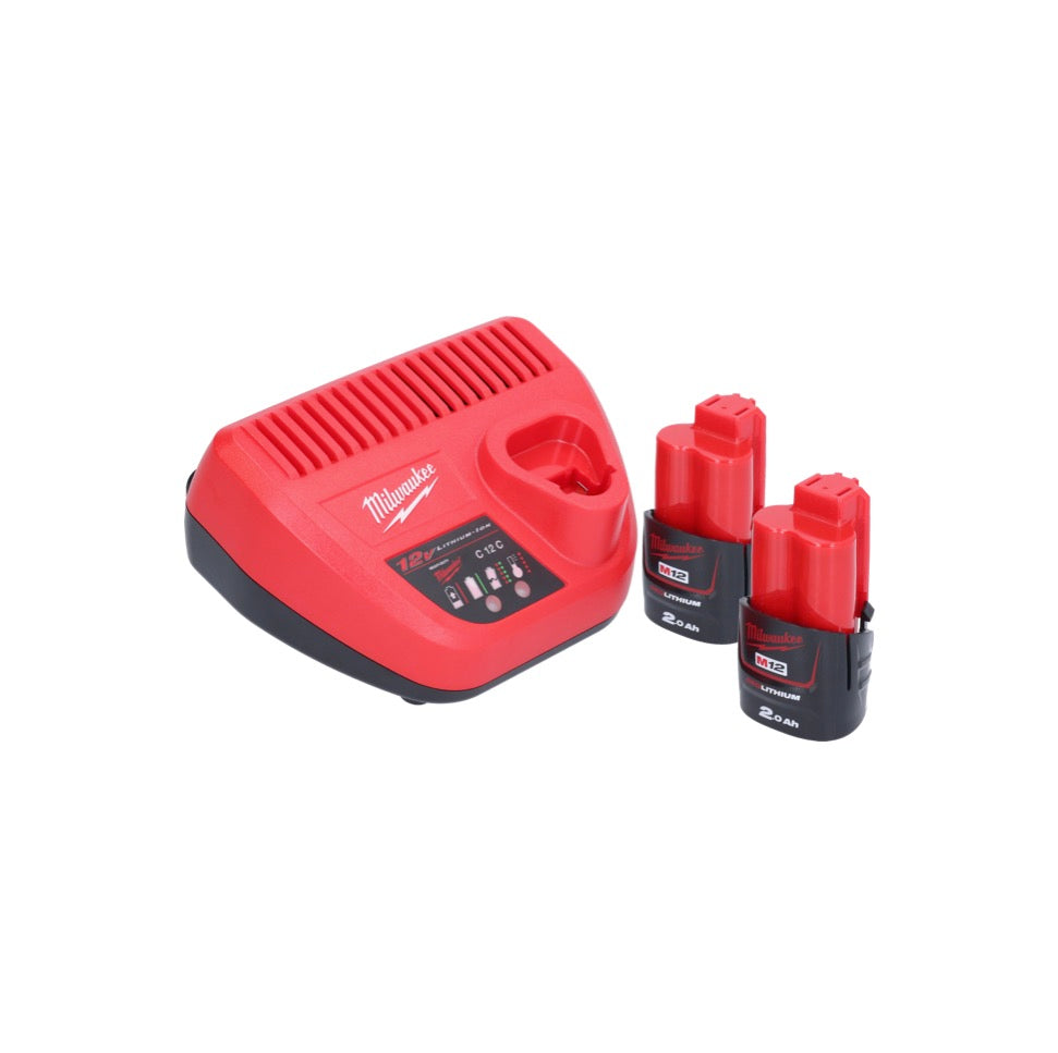 - 2x Milwaukee M12 B2 12 V 2.0 Ah Li-Ion battery