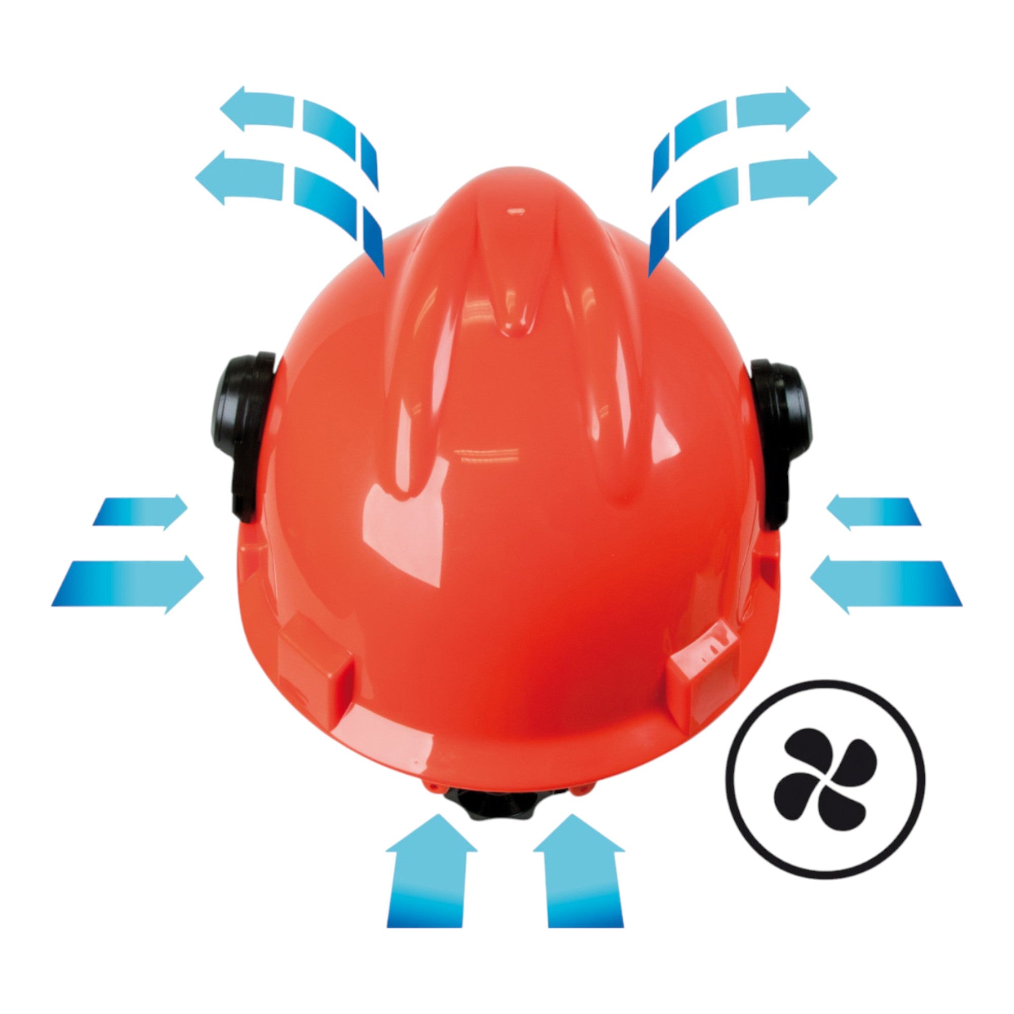 This comfortable and impact-resistant helmet combination offers optimum protection and wearing comfort for demanding work in forestry and gardening. Equipped with an easily adjustable 6-point strap, the helmet fits securely and individually to any head shape. Six integrated ventilation openings ensure pleasant ventilation and high breathability even when worn for long periods. The wide, durable stainless steel visor reliably protects the face from flying particles, while the ergonomically shaped ear defenders with a high sound insulation rating of 25.9 dB (SNR) significantly reduce noise levels.