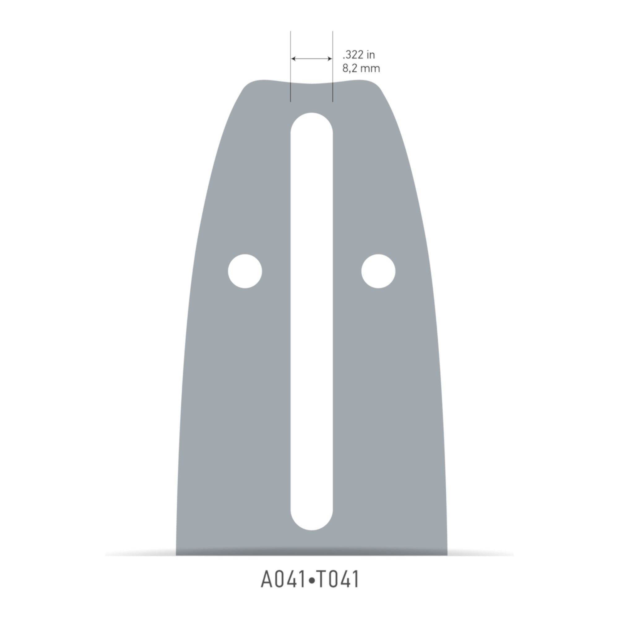The combination of a 16" bar and two 3/8" low profile chains is specially designed for professional arborists who need a powerful chain with minimal vibration and low kickback. With a pitch of 3/8" Low Profile™ and a kerf of 1.3 mm (.050"), this chain ensures precise cutting and high efficiency. The chain has 56 drive links and is particularly durable thanks to LubriTec™ technology, which continuously lubricates the chain and guide bar to reduce friction.