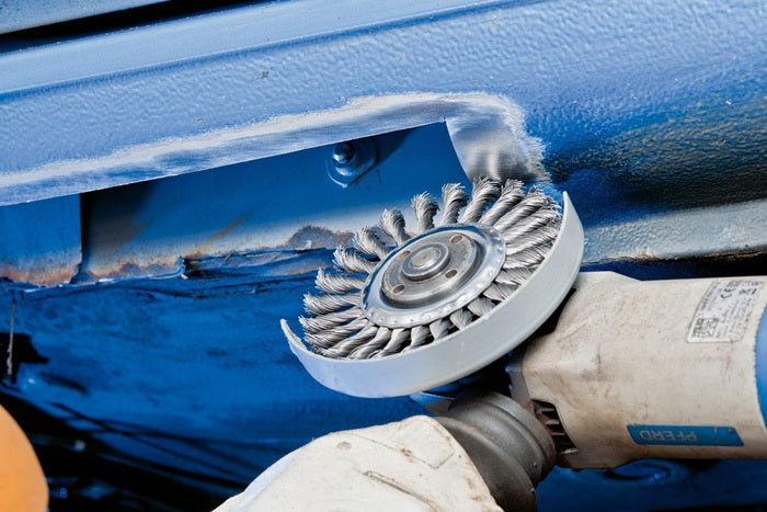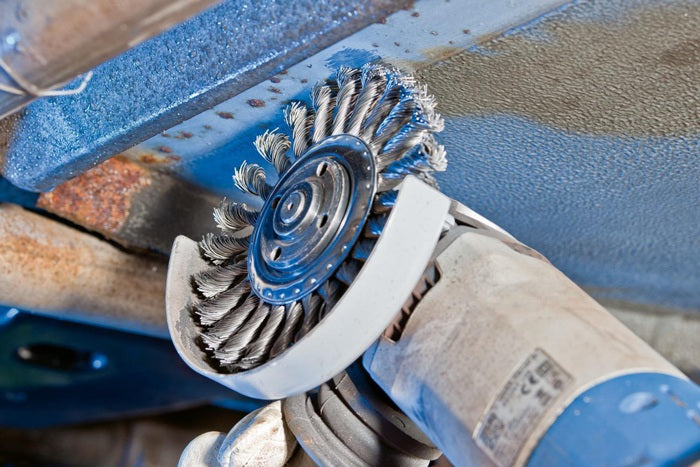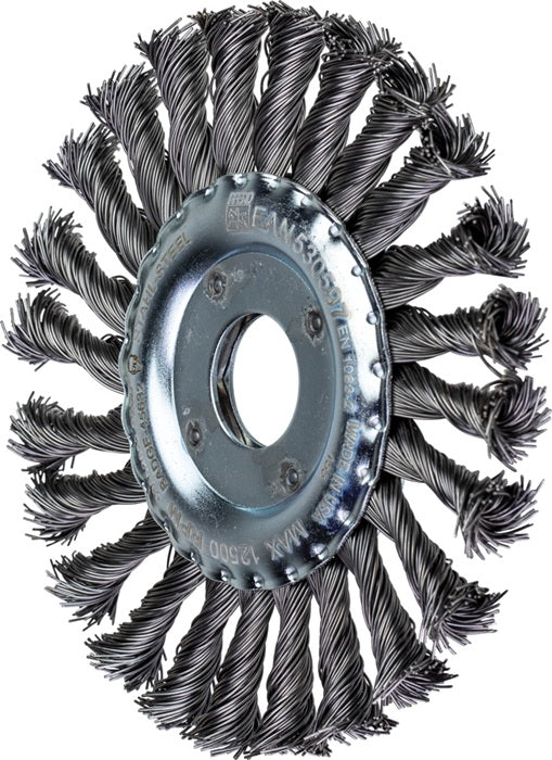 knotted wire - aggressive brush - suitable for heavy-duty brushing work in metal construction such as descaling, derusting, deburring, cleaning weld seams and removing adhesive residue - 22.2 mm Ø hole