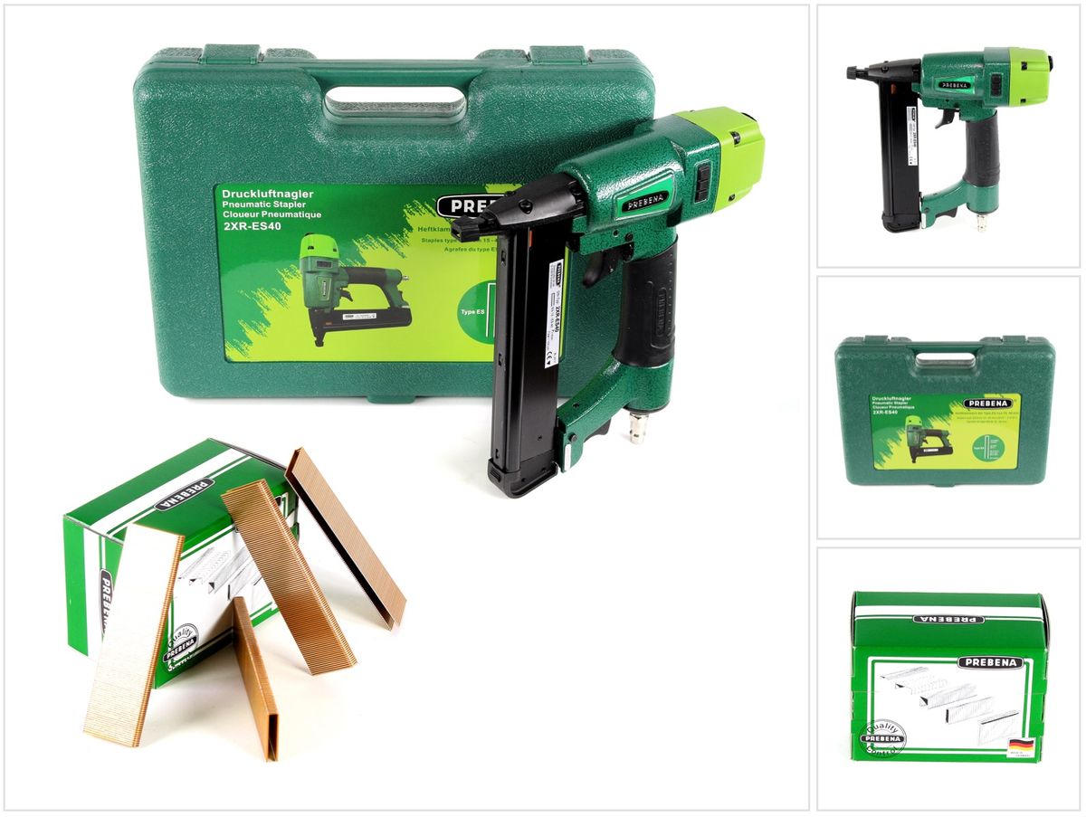 Prebena 2XR-ES40 Stapler pneumatic nailer in transport case type ES + 5200x Prebena ES30CNKHA staples