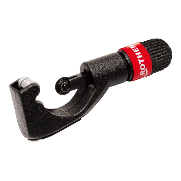 for cutting copper, brass, aluminium and thin-walled steel tubes - constant working radius - cast aluminium design - roller stop protects the cutting wheel - fold-out internal deburrer and spare cutting wheel in the handle - protected threaded spindle protects against dirt and jamming