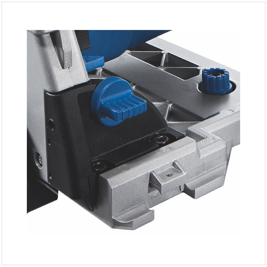 La sierra de inmersión Scheppach PL75 está equipada con un límite de profundidad de corte infinitamente ajustable y ofrece la opción de ajuste de inclinación entre 0° y 45°. El sistema de rieles opcional garantiza cortes precisos y la protección contra astillas de serie también garantiza cortes sin desgarros.