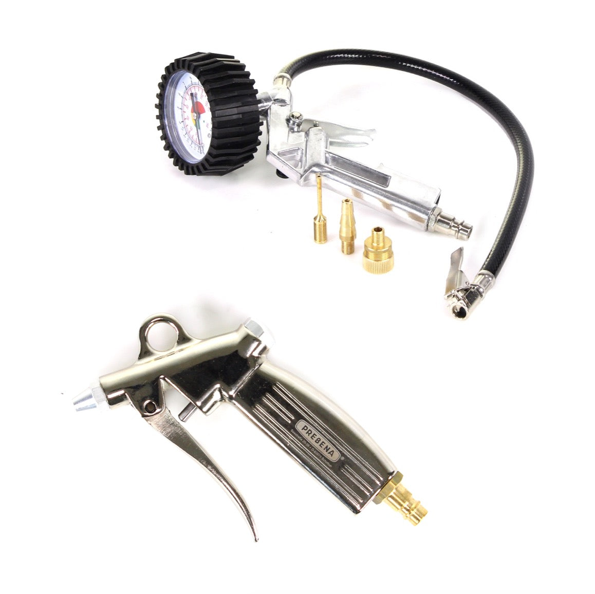 The Senco PC 1010 EU is a handy mini compressor that works extremely quietly and is perfect for construction sites and assembly work thanks to its low weight. It works oil-free and is therefore low-maintenance. Thanks to the integrated overload protection, the compressor is protected against power peaks. As a handy, quiet lightweight, the compressor is ideal for compressed air tools for repairs and finishing work. The Prebena spiral hose with a stretched length of 7.5 m and a working length of 4 m is ideal for all work with compressed air tools with an operating pressure of up to 13 bar. We put the pressure on. With the Prebena tyre inflator. The extensive scope of delivery makes this set an all-rounder - even if you run out of air. Whether for cars, bicycles, inflatable boats or air mattresses, the tyre inflator from Prebena impresses with its shock-protected pressure gauge with a measuring range of 0-12 bar. The flexible inflation hose and the easy-to-read pressure gauge (in tenths of a bar) make this tyre inflator an easy-to-use tool. The connection on the gun has a diameter of 6 mm and is compatible with all quick-release couplings with a diameter of 9 mm. The handy Prebena compressed air blow gun made of aluminium with its narrow bore is ideal for powerful blowing and cleaning of machines, workpieces, drill holes and hollow bodies.