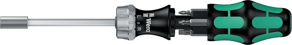 with ratchet function, integrated magazine, magnetic bit holder and multi-component power moulded handle - ratchet switchable (right/fixed/left) suitable for bits with 6.3 mm (1/4") external hex drive C 6.3 - maximum torque up to 50 N.m - hexagonal blade