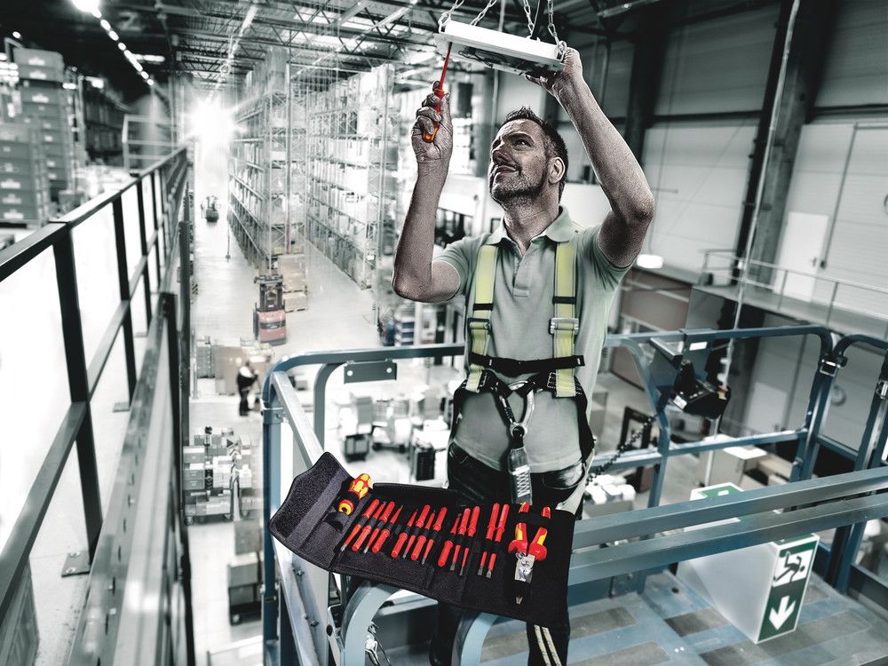 con cuchillas intercambiables (154 mm de largo) y 2 soportes de mano con mango Kraftform de dos componentes · con protección antideslizamiento y deslizamiento · aislamiento VDE hasta 1000 V · fabricado según IEC 60900, probado individualmente · cuchillas intercambiables de aleación para herramientas acero completo con alicates de montaje KNIPEX® con aislamiento VDE (reemplaza 6 herramientas individuales: cortar, pelar, agarrar, doblar, desbarbar, engarzar) · Contenido: 2 mangos aislados Kraftform (102 mm), 1 hoja intercambiable aislada para tornillos ranurados de 2,5 / 3,5* / 4,0 * / 5,5* mm, 1 hoja intercambiable aislada para tornillos con ranura Phillips (PH) gr. 1* / 2* 1 hoja intercambiable aislada cada una para tornillos con tamaño Phillips (PZD). 1* / 2* 1 varilla intercambiable aislada para tornillos más-menos (ranurados/PZD) tamaño 1* / 2* 1 varilla intercambiable aislada para tornillos con perfil interior TORX® T 10 / 15* / ​​​​20* / 25 * 1 alicate para instalaciones eléctricas KNIPEX® * = con hoja de diámetro reducido - también para tornillos profundos