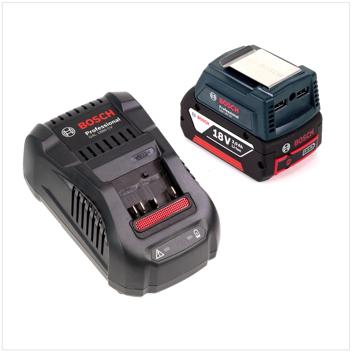 Bosch Power Set mit GAA Professional Chargeur USB Adaptateur pour Batterie 14,4 V / 18 V + 1x Batterie GBA 18V 3,0 Ah Li-Ion + 1x Chargeur rapide GAL 1880 CV