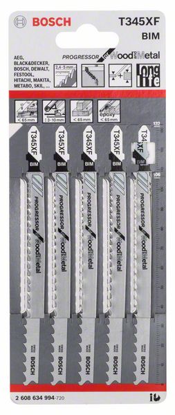 Bosch T 345 XF Progressor for Wood and Metal Lame de scie sauteuse, 132mm - 5pcs. (2608634994)