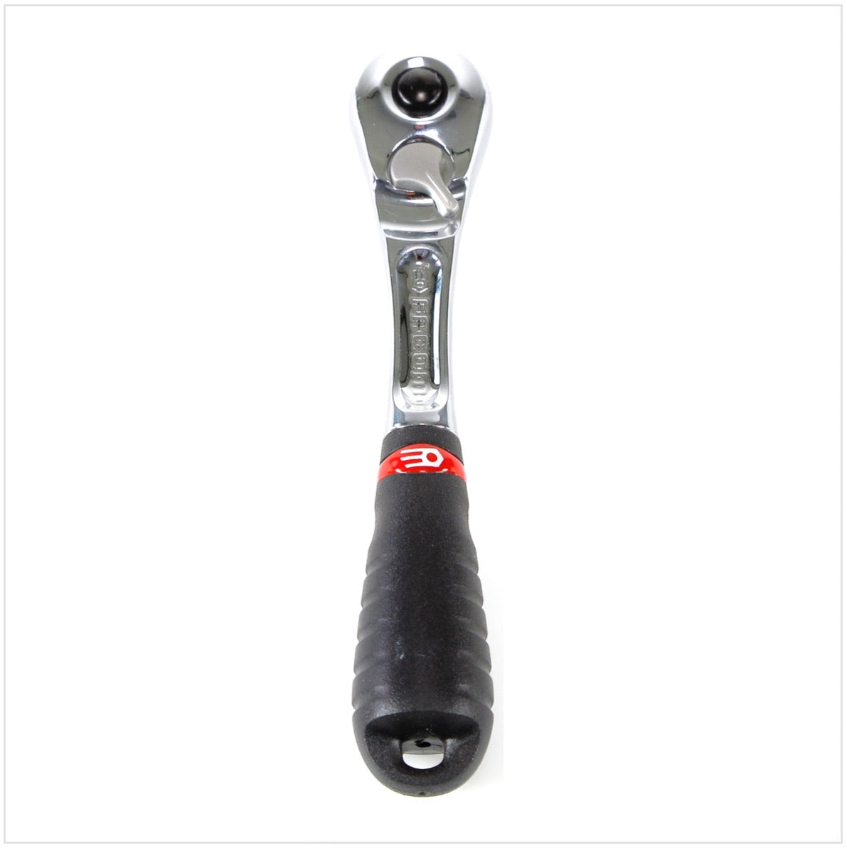 Le cliquet Facom RL.171 PB 1/4" se caractérise par sa grande longévité quelque ce soient les conditions de travail. Le cliquet n'a pas besoin d'entretien, de plus, il est étanche aux poussières, résiste à l'abrasion et aux solvants d'atelier les plus sévères tels que SP95, SP98, gasoil, acétone, liquide de frein, Skydrol, Jet Oil, kérosène. Le mécanisme comporte 72 dents pour une reprise à 5°. Grâce au verrouillage de sécurité de la douille, vous ne perdrez plus de douilles dans votre machine et grâce à l'inversion par levier vous pourrez changer la rotation du cliquet même avec des gants.
