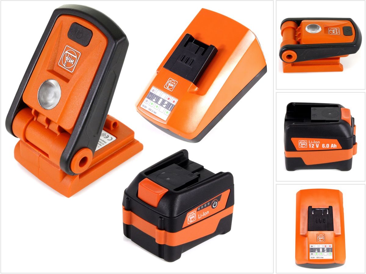 Lampe LED à batterie FEIN ALED 12 12-18V + 1x batterie 6,0Ah 12V + chargeur rapide ALG 50