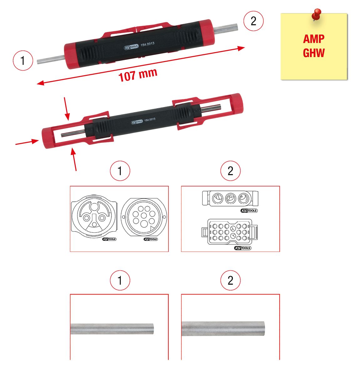 KS TOOLS Extracteur universel de cosses pour connecteur plat et rond 1,5 / 3,5mm ( 154.0013 )