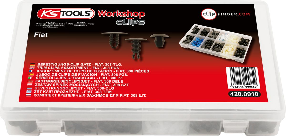 KS TOOLS Jeu de clips de fixation - Fiat, 308 pcs ( 420.0910 )