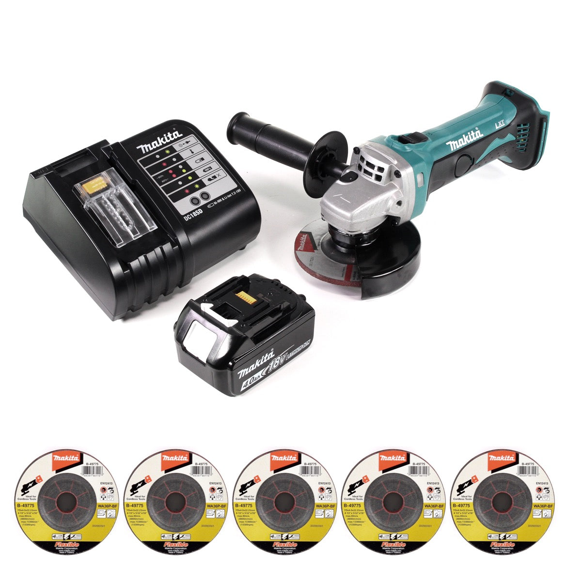 Meuleuse d'angle sur batterie Makita DGA 452 SM1 18 V 115 mm + 1 batterie 4,0 Ah + chargeur + 5 meules