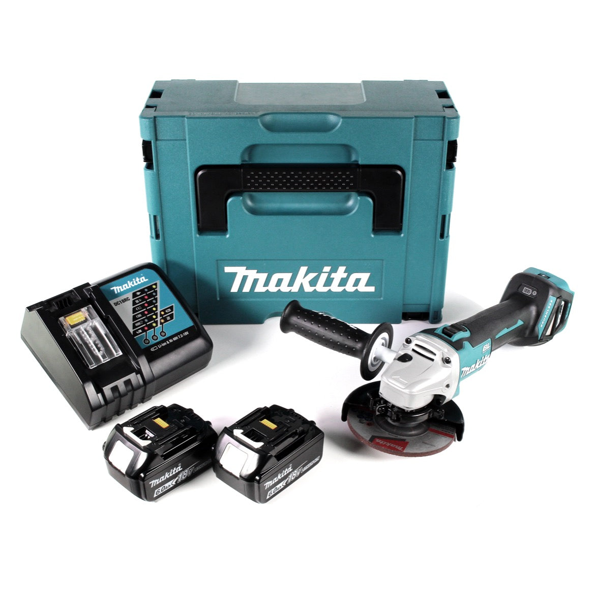 Makita DGA 511 RGJ Meuleuse d'angle sans fil 18V 125mm Brushless + 2x batterie 6,0Ah + chargeur + Makpac