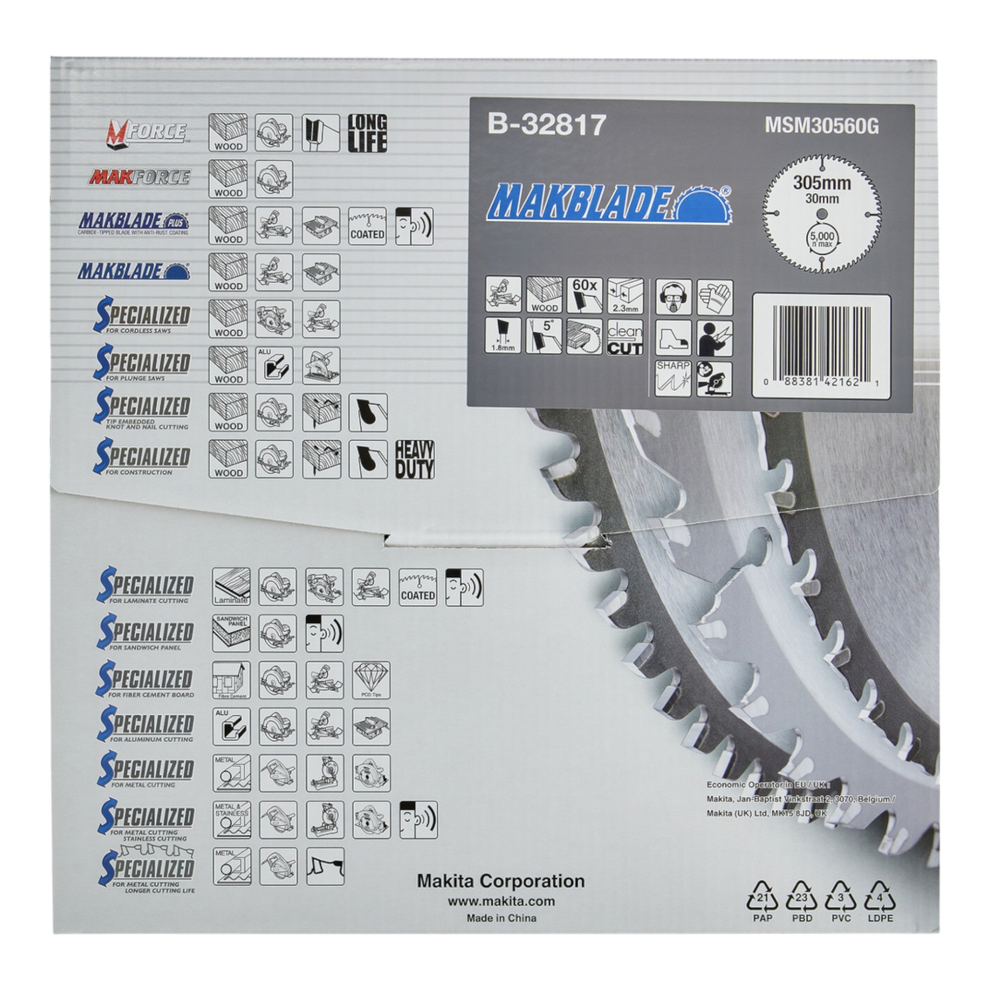 Makita MAKBLADE Lame de scie circulaire 305 x 30 x 2,3 mm 60 dents ( B-32817 ) pour le bois