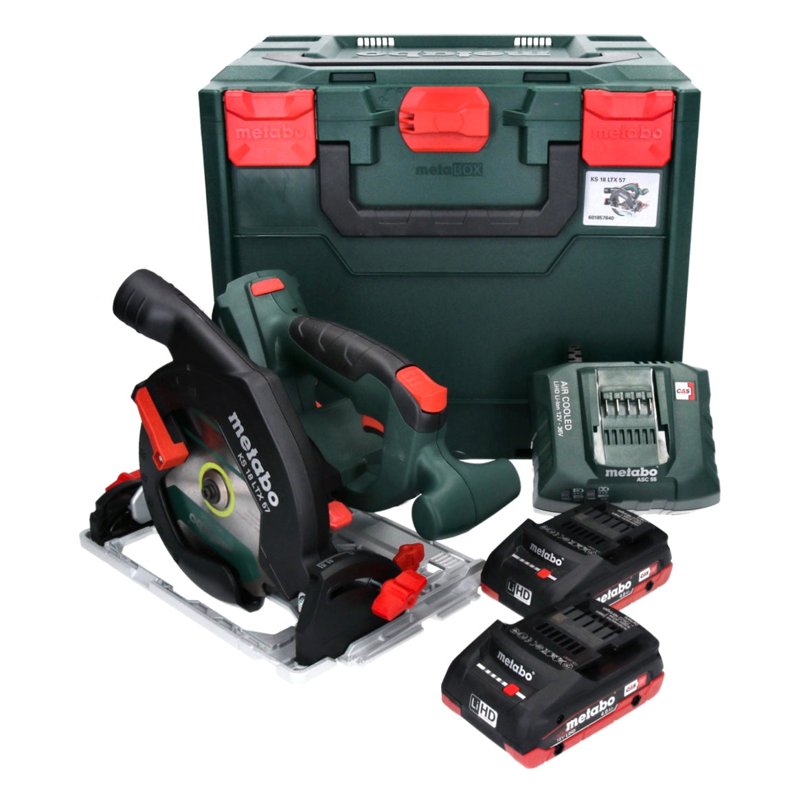 Metabo KS 18 LTX 57 Scie circulaire portative sans fil 165 mm 18V + 2x Batteries 4,0 Ah + Chargeur + Coffret metaBOX